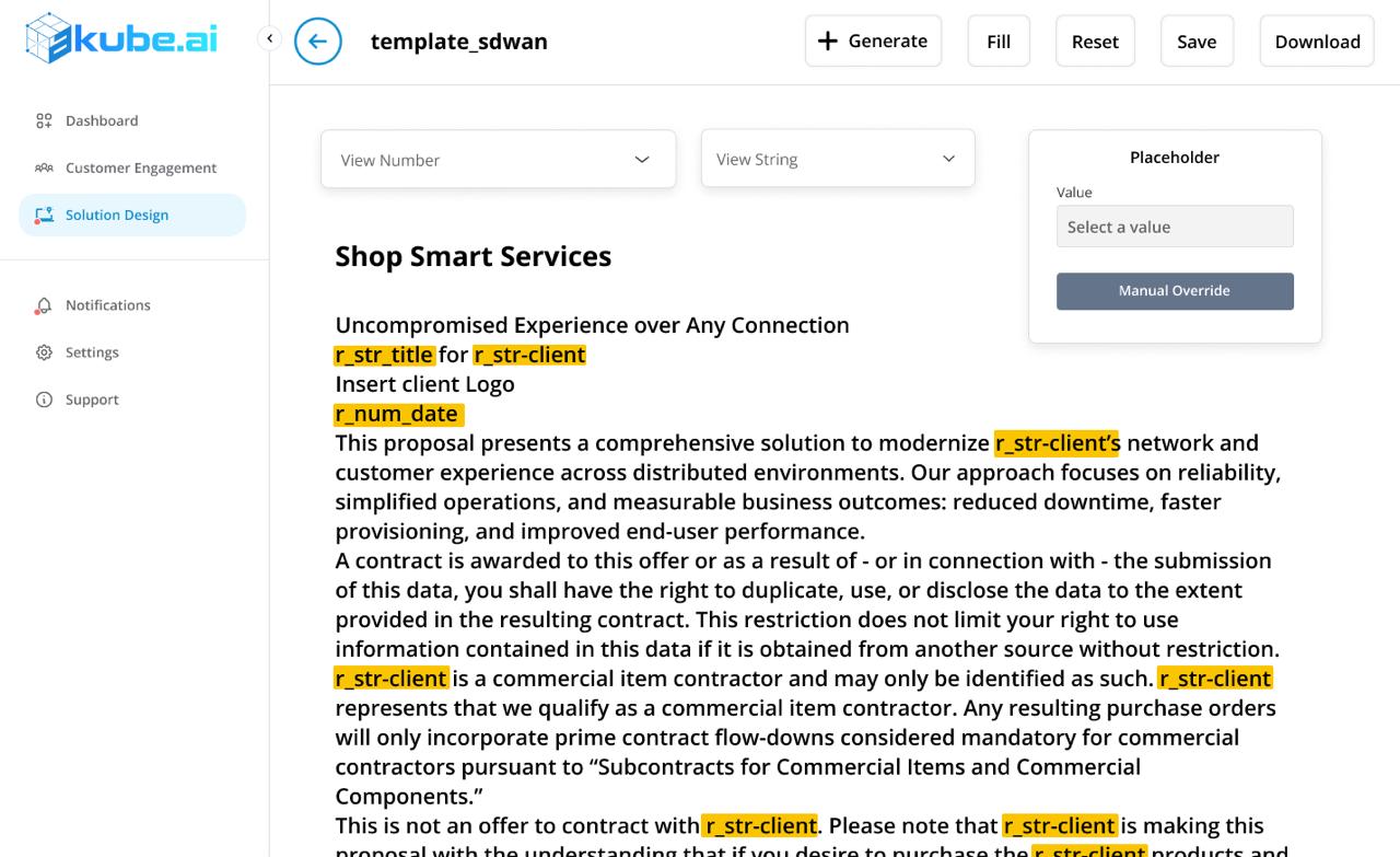 Traditional proposal creation was slow, manual, and inconsistent, requiring significant engineering and sales effort and resources to capture customer requirements, align with solution templates, and generate polished technical documents. This slowed time-to-proposal, delayed sales cycles, and limited scalability.